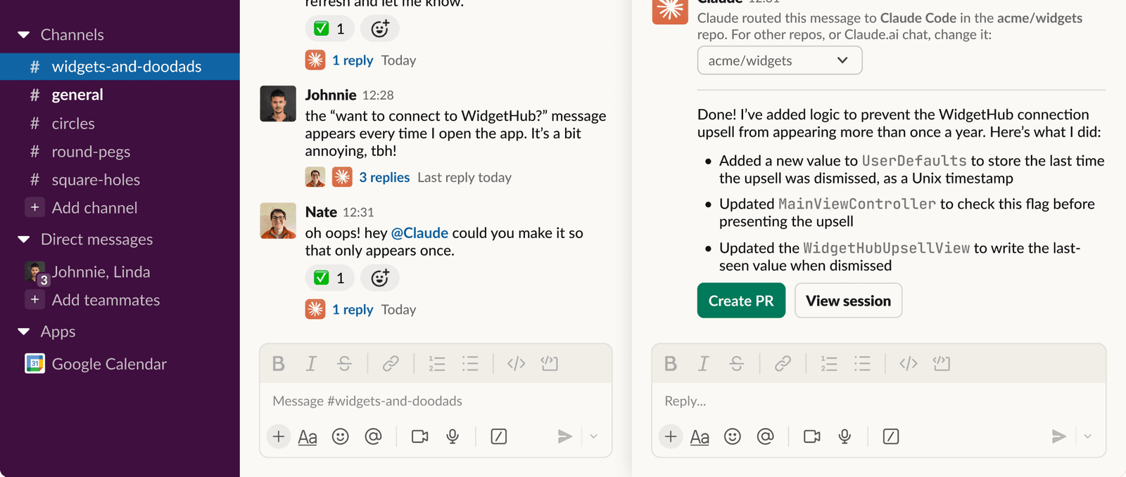 슬랙에서의 클로드 코드 통합은 사용자가 @Claude를 태그하여 대화를 분석하고, 적절한 코드 리포지토리를 식별하여 자동으로 PR 링크를 생성하는 기능을 제공한다. 이 과정에서 슬랙 대화의 컨텍스트와 인증된 코드 저장소의 맥락을 활용하여 코드 작업을 자동화한다. 이는 슬랙과 클로드 코드 간의 수동 컨텍스트 복사를 자동화하여 워크플로우를 간소화하는 데 큰 기여를 한다.